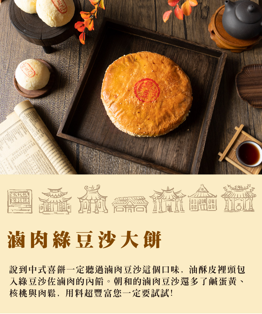 產品介紹 PRODUCT 首頁 › 產品介紹 › 朝選漢式餅系列 › 魯肉豆沙 (600g) 產品分類 全部商品 朝和招牌餅系列 古早味茶點系列 朝選漢式餅系列 糕點小零嘴系列 全部商品 朝和招牌餅系列 古早味茶點系列 朝選漢式餅系列 糕點小零嘴系列 朝選漢式餅系列 魯肉豆沙 (600g) NT $ 170 test.tsao-her.com.tw Mung Bean Cake With Pork And Pork Floss 豚肉でんぶ入り緑豆餡餅 전통식 녹두 고기케이크 選擇規格 600g/ 份 600g/ 含禮盒.提袋 選擇數量 -+ 此商品有兩種包裝規格,請參考選項下單。 加入購物車 下載訂購單 2025朝和餅舖訂購單(1).doc 商品詳細說明 葷食 / 常溫可保存7天 ← 回上頁