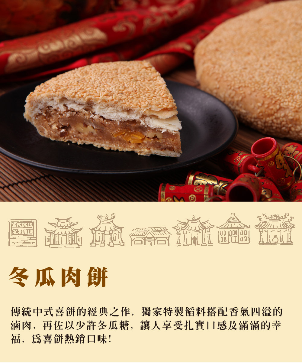 產品介紹 PRODUCT 首頁 › 產品介紹 › 朝選漢式餅系列 › 冬瓜肉餅 (600g) 產品分類 全部商品 朝和招牌餅系列 古早味茶點系列 朝選漢式餅系列 糕點小零嘴系列 全部商品 朝和招牌餅系列 古早味茶點系列 朝選漢式餅系列 糕點小零嘴系列 朝選漢式餅系列 冬瓜肉餅 (600g) NT $ 170 test.tsao-her.com.tw Pork Filling Cake With Candied Winter Melon 豚肉入り冬瓜餡餅 전통식 동과 고기케이크 選擇規格 600g/ 份 600g/ 含禮盒.提袋 選擇數量 -+ 此商品有兩種包裝規格,請參考選項下單。 加入購物車 下載訂購單 2025朝和餅舖訂購單(1).doc 商品詳細說明 葷食 / 常溫可保存10天 ← 回上頁