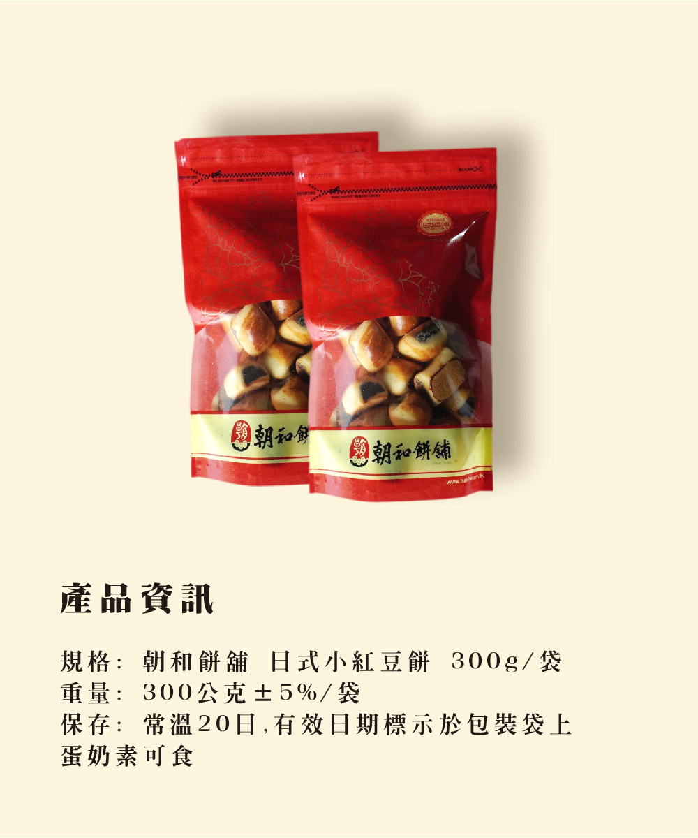 產品介紹 PRODUCT 首頁 › 產品介紹 › 古早味茶點系列 › 日式小紅豆餅袋 (蛋奶素) 產品分類 全部商品 朝和招牌餅系列 古早味茶點系列 朝選漢式餅系列 糕點小零嘴系列 全部商品 朝和招牌餅系列 古早味茶點系列 朝選漢式餅系列 糕點小零嘴系列 古早味茶點系列 日式小紅豆餅袋 (蛋奶素) NT $ 130 test.tsao-her.com.tw Japan Style Red Bean Cake こし餡まんじゅう 팥앙금 구움과자 選擇規格 300g /袋 選擇數量 -+ 加入購物車 下載訂購單 2025朝和餅舖訂購單(1).doc 商品詳細說明 ← 回上頁