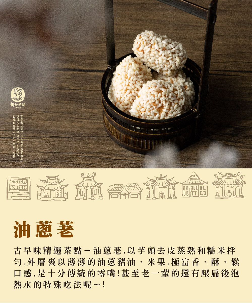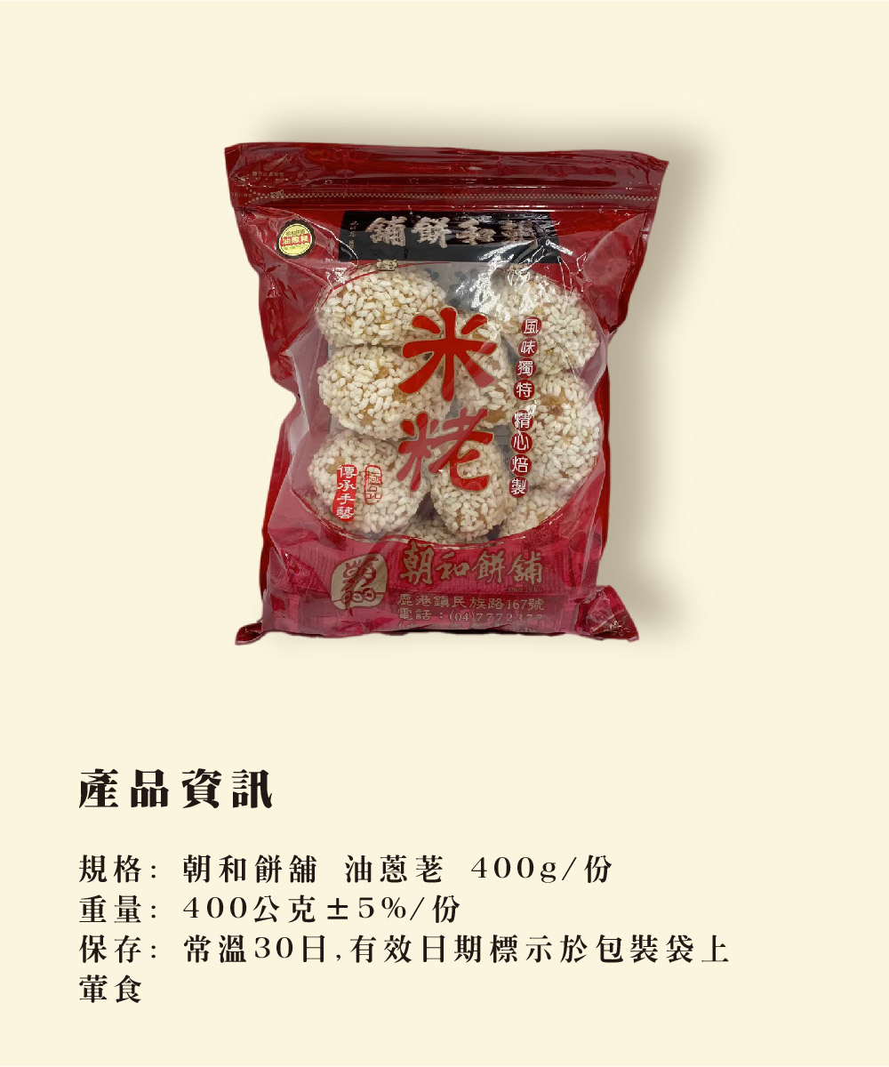 產品介紹 PRODUCT 首頁 › 產品介紹 › 古早味茶點系列 › 米粩油蔥 (葷食) 產品分類 全部商品 朝和招牌餅系列 古早味茶點系列 朝選漢式餅系列 糕點小零嘴系列 全部商品 朝和招牌餅系列 古早味茶點系列 朝選漢式餅系列 糕點小零嘴系列 古早味茶點系列 米粩油蔥 (葷食) NT $ 160 test.tsao-her.com.tw Taiwanese Rice Puff With Lard ラードお米マーラオ 라드(돼지기름)쌀과자 選擇規格 400g /份 選擇數量 -+ 加入購物車 下載訂購單 2025朝和餅舖訂購單(1).doc 商品詳細說明 ← 回上頁